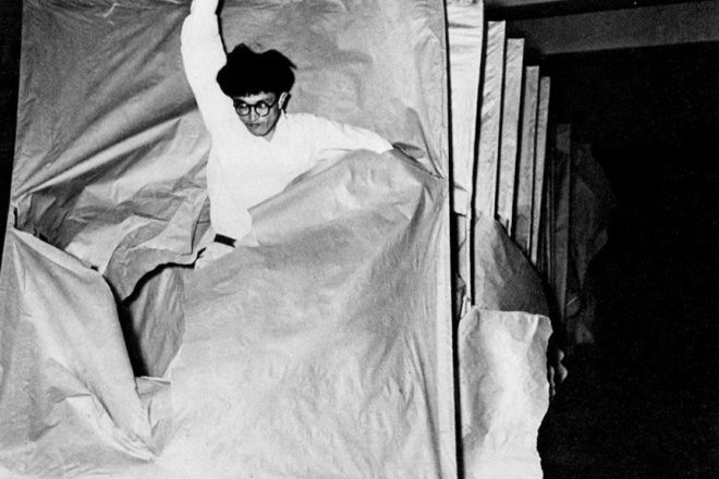 Gutai (meaning embodiment) was the first radical, post-war artistic group in Japan. It was founded in 1954 by the painter Jiro Yoshihara in Osaka, in response to the reactionary artistic context of the time. This internationally influential group was involved in large-scale multimedia environments, performances and installations emphasising the relationship between body and matter. The movement rejected traditional art styles in favor of performative immediacy paving the way for movements such as Fluxus.